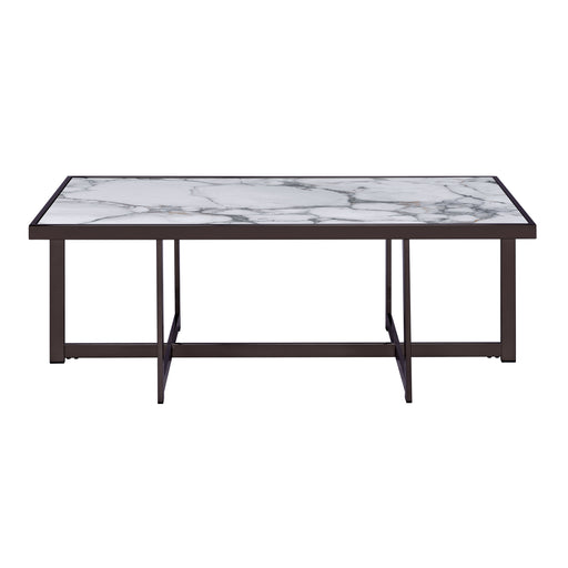 CoasterEssenceEnhance your living space with this modern square coffee table, featuring a striking white faux marble top and a geometric metal frame in a luxurio...