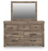Rusticott Queen Poster Bed with Mirrored Dresser