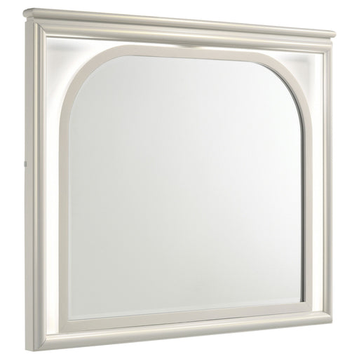 Coaster Fine FurnitureAdd a touch of modern elegance to your dresser with this beautifully designed mirror. The shaped beveled glass, framed by a sleek pearl white borde...