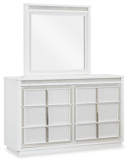 Signature Design by Ashley®Transform your bedroom with this dresser and mirror. Its modern design and glamorous details create a sophisticated retreat. The built-in LED light...