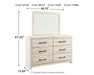 | Details | Includes dresser with mirror, Made of engineered wood (MDF/particleboard) and decorative laminate, Wispy white finish over replicated oak grain with authentic touch, 6 smooth-gliding drawers, Drawer interiors are lined with a faux linen laminate for a clean, finished look, Large-scale hardware with dark finish, Mirror attaches to back of dresser, Assembly required | |