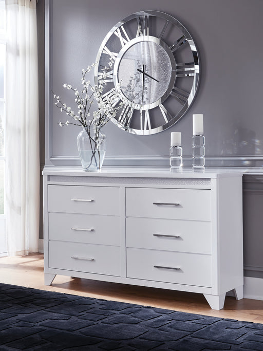 Signature Design by Ashley®Consumer's ChoiceThe epitome of fashion-forward design, this dresser is a beautiful blend of style and luxury. Shiny chrome-tone accents, a pearlized finish and mos...