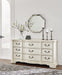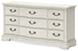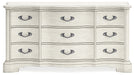 Add a touch of romance to your bedroom with this dresser. Its antiqued white painted finish and serpentine-shaped silhouette details are the picture of easy elegance. Drawers in multiple sizes offer ample storage space, while custom-designed bar pulls add originality.