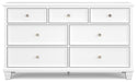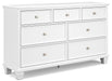This dresser exudes timeless casual design that's ready to define your personal space. Its clean, contemporary white finish, framed drawer fronts and round metal knobs easily adapt to a variety of interiors. Featuring seven storage drawers with dovetail construction and traditional tapered feet, this piece is sure to bring elegant simplicity to your bedroom.