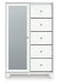| Details | Made with engineered wood (MDF/particleboard/plywood) and decorative laminate for the right balance of affordability and durability, Matte white finish, Decorative laminate replicates natural or man-made material surfaces with consistent color, pattern and texture, Crystal drawer knobs, 5 smooth-operating drawers, Drawer interiors are lined with a faux linen laminate for a clean, finished look, 3 shelves behind mirrored cabinet door; middle shelf is adjustable, Safety is a top priority, clothing storage units are designed to meet the most current standard for stability, ASTM F 2057 (ASTM International), Drawers extend out to accommodate maximum access to drawer interior while maintaining safety | |