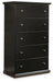 | Details | Made of wood and engineered wood (MDF/particleboard), Antiqued black finish, Rubbed dark metal hardware, 5 smooth-gliding drawers, Includes tipover restraint device, Small Space Solution, Safety is a top priority, clothing storage units are designed to meet the most current standard for stability, ASTM F 2057 (ASTM International), Drawers extend out to accommodate maximum access to drawer interior while maintaining safety | |