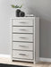 | Details | Made with engineered wood (MDF/particleboard/plywood) and decorative laminate for the right balance of affordability and durability, Matte white finish with subtle replicated wood grain, Decorative laminate replicates natural or man-made material surfaces with consistent color, pattern and texture, Chrome-tone accents, Large-scale chrome-tone handles with faceted details, 5 smooth-gliding drawers, Drawer interiors are lined with a faux linen laminate for a clean, finished look, Safety is a top priority, clothing storage units are designed to meet the most current standard for stability, ASTM F 2057 (ASTM International), Drawers extend out to accommodate maximum access to drawer interior while maintaining safety, Minor assembly required | |
