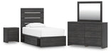 Hollivern Twin Panel Storage Bed with Mirrored Dresser and Nightstand
