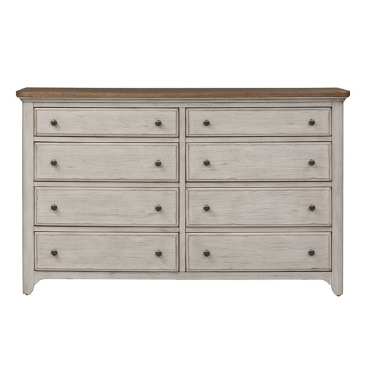 Liberty FurnitureEnjoy the combination of modern and farmhouse with this 8-drawer dresser. Accented by heavy distressing, clean lines and washed brass hardware. Sto...