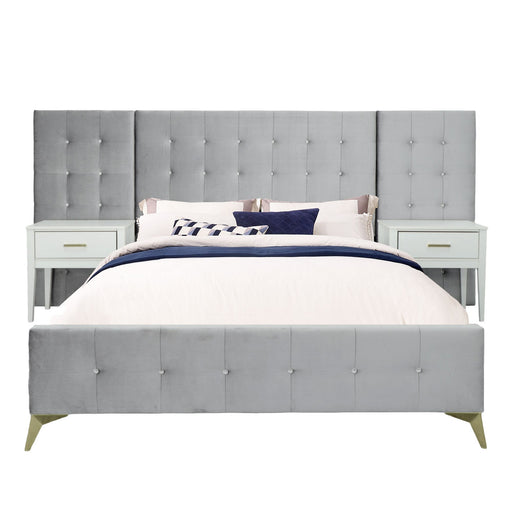 Elements InternationalRosebery - Upholstered Bed With 2 Pillows Rosebery - King Upholstered Bed With 2 Pillows - Light Gray Corduroy98.0"W x 101.0"D x 39.0"H - 228.0 lb ...