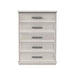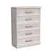 The Avalanche 5-Drawer Chest enhances your bedroom with the versatile appeal of transitional style. Its antique white finish radiates warmth and charm, creating an inviting atmosphere that complements any décor. The drawer fronts feature an elegantly paneled design that adds depth and visual interest, while the distinctive metal pulls with nail-hammered texture provide a striking contrast. With five spacious drawers, the dresser offers ample storage for clothing and bedroom essentials making the Avalanche 5-Drawer Chest a stylish and practical addition to your bedroom.