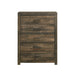 The Bailey 5-Drawer Chest is going to look amazing in your bedroom! This chest comes with five, spacious drawers, allowing you to store away your belongings. The top drawer features a black, felt-lining making it easy to store away your more valuable items. The sleek, bronze drawer pulls complement the wood knots and wood grain design on the surface of this piece beautifully. The bottom drawer comes with a dust proofing layer to help further protect your belongings. Add this transitional piece to your home today for a look that will never go out of style!