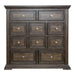 The Big Valley Chesser offers a design that perfectly combines tradition and today’s preferred modern style, resulting in the best of both worlds. Crafted of rubberwood solids and birch veneers, this piece features a brownstone finish with heavy distressing and rub thru, ten drawers of varying sizes, graduated bead molding creating architectural interest, full extension wood framed drawers with premium felt lined top and cedar lined bottom drawers, and is accented with antique pewter knob hardware. Big Valley is traditional living in a design that combines for a grand feel of the past with today’s luxurious lifestyle.