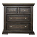 Incorporate this traditional, large scale bedside chest into your bedroom. The finish features heavy distressing, characterized by warm and intricate details. Enjoy the convenience of having a built-in charging station in the back of the night stand, featuring two USB ports and two outlets. The wood framed drawer fronts and block feet complete this traditional look, combing for a grand feel of the past with today's luxurious lifestyle.