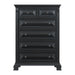 The Bridgestone 6-Drawer Chest is the perfect addition to any bedroom. This case piece is designed with beautiful beveled design throughout, adding a touch of elegance to your decor. The finish features faint distressing for a unique look, while the metal knob hardware adds a contrasting touch. The top drawers are lined with felt to protect delicate items, while the bottom drawer features cedar veneer for added durability. With ball bearing drawer guides and an anti-tipping kit included, this chest is as functional as it is stylish. Bring sophistication and organization to your bedroom with this piece from the Bridgestone collection.