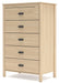 Details Made with engineered wood (MDF/particleboard/plywood) and decorative laminate for the right balance of affordability and durability, Decorative laminate replicates natural or man-made material surfaces with consistent color, pattern and texture, Natural colored replicated ash wood grain finish with authentic touch, 5 smooth-gliding drawers with vinyl-wrapped sides and back for durability, Drawer knobs with metallic brown finish, Round post legs, Safety is a top priority, clothing storage units are designed to meet the most current standard for stability. ASTM F 2057, Drawers extend out to accommodate maximum access to drawer interior while maintaining safety, Assembly required