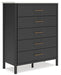 | Details | Made with engineered wood (MDF/particleboard/plywood) and decorative laminate for the right balance of affordability and durability, Matte black finish with subtle replicated wood grain, Replicated white marble top, Decorative laminate replicates natural or man-made material surfaces with consistent color, pattern and texture, Handles with light bronze-tone finish, 5 smooth-gliding drawers, Drawer interiors are lined with a faux linen laminate for a clean, finished look, Safety is a top priority, clothing storage units are designed to meet the most current standard for stability, ASTM F 2057 (ASTM International), Drawers extend out to accommodate maximum access to drawer interior while maintaining safety, Minor assembly required | |