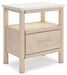 Transform your bedroom with this nightstand. With its clean lines and replicated marble top, it exudes a minimal and sophisticated boho style. Built-in lighting and charging capabilities add simplicity and ease to your everyday tasks. Tailor your space and create the perfect environment for sweet dreams.