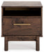 Details Made with engineered wood (MDF/particleboard/plywood) and decorative laminate for the right balance of affordability and durability, Rich brown finish over replicated walnut wood grain with authentic touch, Burnished goldtone pulls, 1 smooth-gliding drawer with vinyl-wrapped sides and back, Open cubby, Assembly required