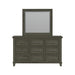 The Canterbury Dresser and Mirror Set exudes timeless elegance with its sleek smooth finish on rich veneer, blending modern and classic design. The ball bearing drawer glides ensure smooth, quiet operation, while refined brushed nickel handles add sophistication. Stylish inset panel fronts and sophisticated beveled edges enhance visual appeal, making this set a stunning focal point in any bedroom. The graceful beveled mirror completes the ensemble, adding charm and functionality. The Canterbury Dresser and Mirror Set perfectly combines functionality and elegance, bringing style and luxury to your living space.