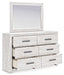| Details | Includes dresser and mirror, Made with engineered wood (MDF/particleboard/plywood) and decorative laminate for the right balance of affordability and durability, Whitewash replicated worn through paint with authentic touch, Decorative laminate replicates natural or man-made material surfaces with consistent color, pattern and texture, Large handles in black finish, 6 smooth-gliding drawers, Framed front and pilasters, Mirror attaches to back of dresser, Safety is a top priority, clothing storage units are designed to meet the most current standard for stability, ASTM F 2057 (ASTM International), Drawers extend out to accommodate maximum access to drawer interior while maintaining safety, Minor assembly required | |