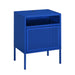 The Ember Nightstand is a quick and simple way to update any room! This table can be used as a nightstand or as an accent table in your living room. You can even keep your devices charged while you binge watch your favorite show or while you sleep. Thanks to the multiple color options, youre sure to find a color that goes great in your home! The table is made of metal and features an open shelf space as well as a cabinet to store away your belongings.