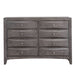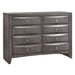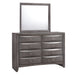 The Emily Dresser will add style and sophistication to any bedroom. Featuring a mirror with a solid wood frame and a dresser with eight spacious drawers—perfect for neatly storing away all your belongings. A dust proofing layer on the bottom drawers help protect your belongings. Silver finish metal knobs pair beautifully with the dark, rich finish, making this case piece a staple in your home for years to come.