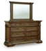Time-honored style, made for today's home. This dresser and mirror pay homage to traditional aesthetics, with a richly detailed finish incorporating a sense of stately elegance. Substantially-scaled moulding details and antiqued brass-tone knobs round out the piece in graceful fashion.