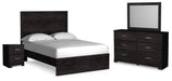 Belachime Full Panel Bed with Mirrored Dresser and Nightstand