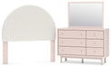 Wistenpine Full Upholstered Panel Headboard with Mirrored Dresser