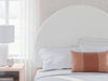 | Details | B1323-87: Made with durable engineered wood frame covered in a creamy white boucle, Polyester upholstery, ¼" bolts (not included) are needed to attach headboard to your existing bed frame, Minor assembly required, B1323-91: Made with engineered wood (MDF/particleboard/plywood) and decorative laminate for the right balance of affordability and durability, Subtle blush finish over replicated pecan wood grain, Decorative laminate replicates natural or man-made material surfaces with consistent color, pattern and texture, Champagne colored knobs, 1 smooth-gliding drawer, 1 open shelf, Drawer interiors are lined with a faux linen laminate for a clean, finished look, 2 slim-profile USB charging ports, Power cord included; UL Listed, Minor assembly required, B1323B1: Includes dresser and mirror, Made with engineered wood (MDF/particleboard/plywood) and decorative laminate for the right balance of affordability and durability, Subtle blush finish over replicated pecan wood grain, Decorative laminate replicates natural or man-made material surfaces with consistent color, pattern and texture, Champagne colored knobs, 6 smooth-gliding drawers , Drawer interiors are lined with a faux linen laminate for a clean, finished look, Mirror can be attached to back of dresser or wall mounted horizontally or vertically, Safety is a top priority, clothing storage units are designed to meet the most current standard for stability, ASTM F 2057 (ASTM International) , Drawers extend out to accommodate maximum access to drawer interior while maintaining safety, Minor assembly required, | |