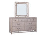 - The unique transitional styling of the Fusion Dresser delivers universal appeal and versatility. Seven soft-close drawers with felt lined top drawer and jewelry insert will provide ample storage for apparel, jewelry and accessories. Crafted from straight grain Oak Solids and Veneers, this dresser features a subtle Dawn Finish with Antique Brass Hardware and is ideal for a main or spare bedroom.