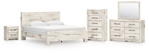 Lawroy King Panel Bed with Mirrored Dresser, Chest and Nightstand
