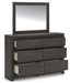 | Details | PCB3370B8: Includes headboard panel, headboard posts, footboard and rails, Made with engineered wood (MDF/particleboard/plywood) and decorative laminate for the right balance of affordability and durability , Dark charcoal finish over replicated oak grain, Decorative laminate replicates natural or man-made material surfaces with consistent color, pattern and texture, Foundation/box spring required, sold separately, Mattress available, sold separately, Assembly required, PCB3370B1: Includes dresser and mirror, Made with engineered wood (MDF/particleboard/plywood) and decorative laminate for the right balance of affordability and durability , Dark charcoal finish over replicated oak grain, Decorative laminate replicates natural or man-made material surfaces with consistent color, pattern and texture, Recessed hand grabs create hardware-less effect, 6 smooth-gliding drawers, Drawer interiors are lined with a faux linen laminate for a clean, finished look , Safety is a top priority, clothing storage units are designed to meet the most current standard for stability, ASTM F 2057 (ASTM International), Drawers extend out to accommodate maximum access to drawer interior while maintaining safety, Mirror attaches to back of dresser; can also be mounted on wall horizontally or vertically, Assembly required, PCB3370-46: Made with engineered wood (MDF/particleboard/plywood) and decorative laminate for the right balance of affordability and durability, Dark charcoal finish over replicated oak grain, Decorative laminate replicates natural or man-made material surfaces with consistent color, pattern and texture, Recessed hand grabs create hardware-less effect, 5 smooth-gliding drawers, Drawer interiors are lined with a faux linen laminate for a clean, finished look, Safety is a top priority, clothing storage units are designed to meet the most current standard for stability, ASTM F 2057 (ASTM International), Drawers extend out to accommodate maximum access to drawer interior while maintaining safety, Assembly required, PCB3370-92: Made with engineered wood (MDF/particleboard/plywood) and decorative laminate for the right balance of affordability and durability, Dark charcoal finish over replicated oak grain, Decorative laminate replicates natural or man-made material surfaces with consistent color, pattern and texture, Recessed hand grabs create hardware-less effect, 2 smooth-gliding drawers, Drawer interiors are lined with a faux linen laminate for a clean, finished look, 2 slim-profile USB-C charging ports, Power cord included; UL Listed, Assembly required, | |