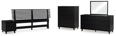 Details B1013-158: Made with engineered wood (MDF/particleboard/plywood) and decorative laminate for the right balance of affordability and durability, Matte black finish with subtle replicated wood grain, Decorative laminate replicates natural or man-made material surfaces with consistent color, pattern and texture, ¼" bolts (not included) are needed to attach headboard to your existing bed frame, Minor assembly required, B1013B11: Includes dresser and mirror, Made with engineered wood (MDF/particleboard/plywood) and decorative laminate for the right balance of affordability and durability, Matte black finish with subtle replicated wood grain, Decorative laminate replicates natural or man-made material surfaces with consistent color, pattern and texture, 6 smooth-gliding drawers, Drawer interiors are lined with a faux linen laminate for a clean, finished look, Integrated drawer pulls, Framed front and pilasters, Mirror attaches to back of dresser; can also be mounted on wall horizontally or vertically, Safety is a top priority, clothing storage units are designed to meet the most current standard for stability, ASTM F 2057 (ASTM International), Drawers extend out to accommodate maximum access to drawer interior while maintaining safety, Minor assembly required, B1013-345: Made with engineered wood (MDF/particleboard/plywood) and decorative laminate for the right balance of affordability and durability, Matte black finish with subtle replicated wood grain, Decorative laminate replicates natural or man-made material surfaces with consistent color, pattern and texture, 5 smooth-gliding drawers, Drawer interiors are lined with a faux linen laminate for a clean, finished look, Integrated drawer pulls, Framed front and pilasters, Safety is a top priority, clothing storage units are designed to meet the most current standard for stability, ASTM F 2057 (ASTM International), Drawers extend out to accommodate maximum access to drawer interior while maintaining safety, Minor assembly required, B1013-92: Made with engineered wood (MDF/particleboard/plywood) and decorative laminate for the right balance of affordability and durability, Matte black finish with subtle replicated wood grain, Decorative laminate replicates natural or man-made material surfaces with consistent color, pattern and texture, 2 smooth-gliding drawers, Drawer interiors are lined with a faux linen laminate for a clean, finished look, Integrated drawer pulls, Framed front and pilasters, USB and wireless charging options, Power cord included; UL Listed, Minor assembly required,