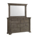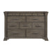 The Kings Court 10-Drawer Dresser is the perfect addition to any bedroom with its elegant design and ample storage space. With 10 drawers, including 3 black felt lined top drawers and 2 cedar veneer bottom drawers, there's plenty of room for all your clothing and accessories. The dresser also features elegant molding and both knob and pull handles for a stylish touch. Upgrade your bedroom furniture with the Kings Court 10-Drawer Dresser in Grey.