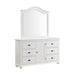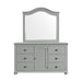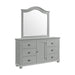 The Kona Dresser and Mirror Set is a stylish and functional addition to any bedroom. This set includes a dresser with a curved mirror top, drawers, and adjustable shelf cabinet storage. The chevron pattern detail on the cabinet door front adds a touch of elegance, while the black knob and cup pull hardware give it a modern look. The top drawers are lined with felt to protect your belongings, and the dust-proofing bottom layer ensures that your items stay clean. With Kenlin drawer guides, bun feet for stability, and an included anti-tipping kit for safety, the Kona Dresser and Mirror Set is both practical and chic.