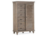 Refined design meets casual and rustic appeal in Lancaster. Pine solids are crafted into handsome beaded panels on the tall headboard and footboard of the Panel bed and are supported by raised turned feet. An updated Dovetail Grey finishes the wood and is accented by Weathered Bronze pulls. Cases have overhung tops and bead frame drawers with a nice shaped base atop the same turned legs. Crisp and updated, Lancaster promises long-lasting design and sturdy construction for any relaxed setting.