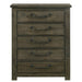 The Maverick 5-Drawer Chest in Grey delivers rustic and cozy style to your sleeping space. Features distressing and wood grain detailing throughout for that warm feel. Constructed of sturdy solid and manufactured woods for years of use. Perfect neutral finish for adding to your existing bedroom aesthetic. Complete the look by adding the Maverick Panel Bed to your bedroom.