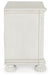 | Details | Made with hardwood solids, veneer and MDF substrate with cast resin components, Antiqued white finish, Metal pulls with polished pewter-tone finish, 2 smooth-gliding drawers with fully finished interiors, Drawers with French/English dovetail construction and heavy-duty ball-bearing side glides (pull-out tray and top drawer felt lined), Pull-out tray behind bottom drawer, Thick decorative moulding, Reeded bun feet | |
