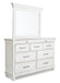 | Details | B777B2: Includes queen panel headboard, footboard and rails, Made with solid wood, veneers and engineered wood, Distressed whitewash finish, Foundation/box spring required, sold separately, Mattress available, sold separately, Assembly required, B777B1: Includes dresser and mirror, Made with solid wood, veneers and engineered wood, Distressed whitewash finish, Dark gray pewter-tone finished metal hardware, 7 smooth-gliding drawers, plus 2 small-scaled accessory drawers, Mirror attaches to back of dresser, Assembly required, B777-46: Made with solid wood, veneers and engineered wood, Distressed whitewash finish, Dark gray pewter-tone finished metal hardware, 7 smooth-gliding drawers, B777-93: Made with solid wood, veneers and engineered wood, Distressed whitewash finish, Dark gray pewter-tone finished metal hardware, 2 smooth-gliding drawers, plus 1 small-scale top accessory drawer, | |