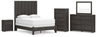 Details PCB3370B2: Includes headboard panel, headboard posts, footboard and rails, Made with engineered wood (MDF/particleboard/plywood) and decorative laminate for the right balance of affordability and durability , Dark charcoal finish over replicated oak grain, Decorative laminate replicates natural or man-made material surfaces with consistent color, pattern and texture, Foundation/box spring required, sold separately, Mattress available, sold separately, Assembly required, PCB3370B1: Includes dresser and mirror, Made with engineered wood (MDF/particleboard/plywood) and decorative laminate for the right balance of affordability and durability , Dark charcoal finish over replicated oak grain, Decorative laminate replicates natural or man-made material surfaces with consistent color, pattern and texture, Recessed hand grabs create hardware-less effect, 6 smooth-gliding drawers, Drawer interiors are lined with a faux linen laminate for a clean, finished look , Safety is a top priority, clothing storage units are designed to meet the most current standard for stability, ASTM F 2057 (ASTM International), Drawers extend out to accommodate maximum access to drawer interior while maintaining safety, Mirror attaches to back of dresser; can also be mounted on wall horizontally or vertically, Assembly required, PCB3370-46: Made with engineered wood (MDF/particleboard/plywood) and decorative laminate for the right balance of affordability and durability, Dark charcoal finish over replicated oak grain, Decorative laminate replicates natural or man-made material surfaces with consistent color, pattern and texture, Recessed hand grabs create hardware-less effect, 5 smooth-gliding drawers, Drawer interiors are lined with a faux linen laminate for a clean, finished look, Safety is a top priority, clothing storage units are designed to meet the most current standard for stability, ASTM F 2057 (ASTM International), Drawers extend out to accommodate maximum access to drawer interior while maintaining safety, Assembly required, PCB3370-92: Made with engineered wood (MDF/particleboard/plywood) and decorative laminate for the right balance of affordability and durability, Dark charcoal finish over replicated oak grain, Decorative laminate replicates natural or man-made material surfaces with consistent color, pattern and texture, Recessed hand grabs create hardware-less effect, 2 smooth-gliding drawers, Drawer interiors are lined with a faux linen laminate for a clean, finished look, 2 slim-profile USB-C charging ports, Power cord included; UL Listed, Assembly required,