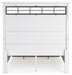 | Details | B844B2: Includes panel headboard, storage footboard, rails and roll slats, Footboard made with hardwood solids, MDF substrates and butcher block oak veneer, Headboard and rails made with hardwood solids and MDF substrates, White finish, Headboard with inset black metal barn sash, 2 drawers in footboard with fully finished interior, dovetail construction and ball-bearing side glides, Pulls with matte black finish, Bed does not require a foundation/box spring, Mattress available, sold separately, Assembly required, B844B1: Includes dresser and mirror, Made with hardwood solids, MDF substrates and butcher block oak veneer, Dresser with 2-tone finish (white finish; butcher block oak veneer with natural finish), Pulls with matte black finish, 10 spacious drawers with fully finished interiors (top drawers felt lined), dovetail construction and ball-bearing side glides , Drawers with inset picture fronts, Mirror attaches to back of dresser, | |
