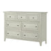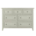A fresh Weathered White finish on cathedral ash veneers and hardwoods contrasts simple Weathered Bronze pulls to create timeless comfort in Raelynn. Climb into the clean and crisp feel of gorgeous Irish linen in the perfectly tailored panel bed which showcases the beveled panel and bead molding detail that classifies this collection as updated Shaker. Traditional and transitional at once, Raelynn is the ideal cottage collection that is equally as at home in the suburbs.