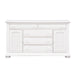 Cottage design is always in fashion. Summer house features the best of cottage with louvered panel accents in an Oyster White finish.