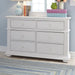 Cottage design is always in fashion. Summer house features the best of cottage with louvered panel accents in an Oyster white finish.