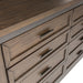 Enhance your home with the Thornwood Hills two-sided storage bed, dresser, and mirror. Crafted of rubberwood solids with mango veneers, this kit features a rock beaten grey finish with saw cuts, straight line cases with wide pilasters and block feet, metal strip accents, planked tops and side panels, wood framed drawer fronts, full extension drawers with felt lined top drawers, and is accented with dark antique pewter hammered metal bar pull hardware. This functional two-sided storage bed features two drawers in the footboard, and a drawer on each side rail maximizing storage space beneath your bed. The dresser features eight drawers of storage, and pairs well with the wood framed mirror that features a beveled edge. Attach the mirror to the dresser with the included bolt-on supports. Add this unique bedroom set to your traditional style home.