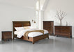 | Details | Includes queen sleigh headboard, rails and storage footboard with roll slats, Made with hardwood solids, select hardwood veneer and MDF substrate, Warm brown cherry finish, Dark bronze-tone knobs, 2 smooth-gliding drawers in footboard, Bed does not require additional foundation/box spring; accommodates most zero clearance adjustable bases, Mattress available, sold separately, Assembly required | |