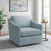 The Acacia Accent Swivel Chair in light blue brings a blend of style and comfort to any space. Designed with an effortless swivel function, this chair lets you turn with ease, making it the perfect incorporation to dynamic living spaces. Its sleek, minimalist lines and soft blue upholstery add a fresh pop of color while seamlessly blending with transitional decor. The plush seat, supportive backrest, and sturdy arms ensure lasting comfort, whether you?re reading, relaxing, or entertaining guests. Compact yet inviting, the Acacia chair is a versatile addition to living rooms, bedrooms, or home offices.