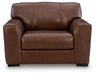 Effortlessly stylish, indulgently comfortable. This oversized chair encourages everyday relaxation with invitingly plush, extra-spacious cushions. It embodies affordable luxury, pairing the sleek appeal of top grain leather in the seating area with expertly matched faux leather on the sides and back. Suiting spaces from casual to contemporary, the chair's universal appeal makes staging your space nearly effortless.